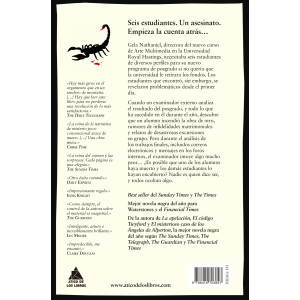 Cuando un examinador externo analiza el resultado del posgrado, y todo lo que ha sucedido en él durante el año, descubre que un alumno incendió la obra de otro, rumores de infidelidades matrimoniales y relatos de desastrosas excursiones en grupo. Pero durante el análisis de los trabajos finales, incluidos correos electrónicos y mensajes en los foros internos, el examinador intuye algo mucho peor… ¿Es posible que uno de los alumnos haya muerto y los demás estudiantes lo hayan encubierto? Nadie es quien dice ser, y todos ocultan algo.