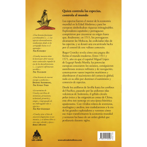 Roger Crowley revela cómo esta pugna dio forma al mundo moderno. Entre 1511 y 1571, año en que el español Miguel López de Legazpi funda Manila, las potencias europeas conectaron los océanos, consiguieron asombrosos avances militares y de navegación, construyeron vastos imperios marítimos y alumbraron el nacimiento del comercio global, todo en su afán por dominar el suministro y comercio de especias.