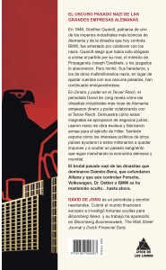 En Dinero y poder en el Tercer Reich, el periodista David de Jong revela cómo las dinastías industriales más ricas de Alemania amasaron dinero y poder colaborando con el Tercer Reich. Demuestra cómo estos magnates se apropiaron de negocios judíos, usaron mano de obra esclava y fabricaron armas para el ejército de Hitler. También expone cómo los intereses políticos de otros países ayudaron a estos millonarios a quedar impunes y a ocultar un pasado sangriento que sigue manchando la economía alemana y mundial.