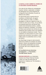«En medio de la sangrienta guerra que Moscú libra contra Ucrania, con Putin invocando las “gloriosas victorias” de la Segunda Guerra Mundial, […]el vívido y dramático relato de Iain MacGregor nos recuerda la horrible realidad de Stalingrado.»