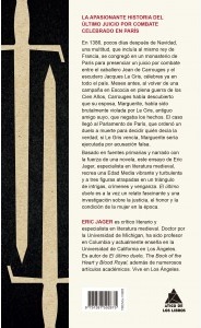 Basado en fuentes primarias y narrado con la fuerza de una novela, este ensayo de Eric Jager, especialista en literatura medieval, recrea una Edad Media vibrante y turbulenta y a tres figuras atrapadas en un triángulo de intrigas, crímenes y venganza. El último duelo es a la vez un relato fascinante y una investigación sobre la justicia, el honor y la condición de la mujer en la época.